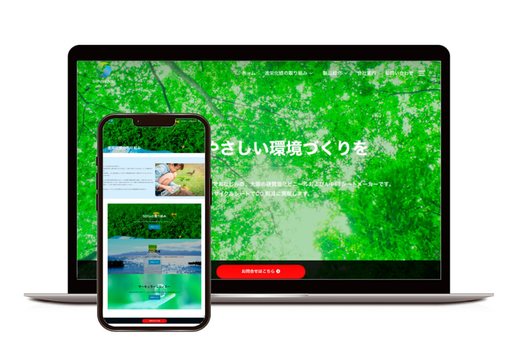 リサイクルをイメージできるよう、トップページにGIF動画を配置。常に動くと目が散るのと負担軽減を考えて、ループは2回としました。